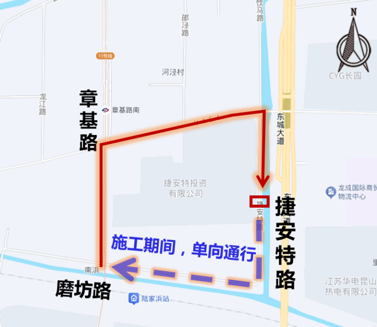 施工期間道路車流量大,請過往車輛注意繞行,車輛可由章基路、洪湖路繞行。