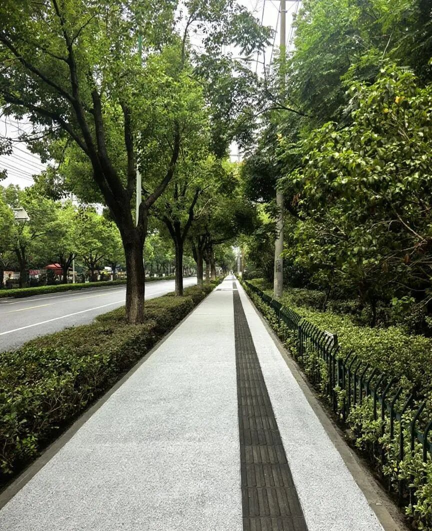 人行道創(chuàng)新采用透水混凝土工藝,這種“會呼吸”的鋪裝材料,有效促進(jìn)雨水下滲,補(bǔ)充地下水,緩解城市熱島效應(yīng),體現(xiàn)昆山高新區(qū)建設(shè)“海綿城市”的先進(jìn)理念。