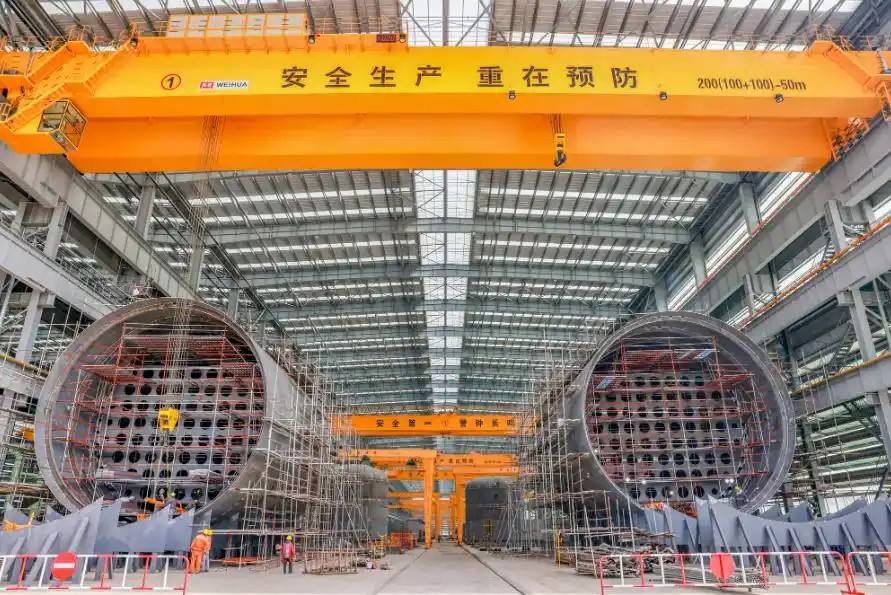 新時代造船交付的國內(nèi)首艘甲醇雙燃料9000TEU集裝箱船,標(biāo)志著泰州市在清潔能源船型領(lǐng)域?qū)崿F(xiàn)突破;揚子鑫福為法國達(dá)飛海運集團承建的首制24000TEU雙燃料動力集裝箱船,是全球最先進的綠色船舶之一,與傳統(tǒng)燃油集裝箱船相比,二氧化碳排放量減少約20%,硫氧化物和顆粒物排放量減少99%。新時代造船建成國內(nèi)最大單體智能化分段車間(480米長),提升平面分段效率30%,將巴拿馬型散貨船建造周期從2年縮短至8個月。